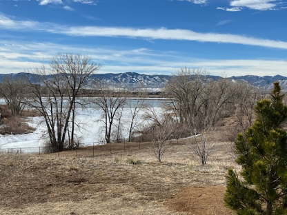 Description: This segment of the Highline Canal Trail offers great views across McLellan Reservoir in addition to nice birding opportunities along the cottonwood-lined canal trail. There is an asphalt spur trail that offers a great view of tree-rimmed lake and the foothills all the way to Mount Blue Sky (formerly Mt. Evans). I’m guessing this is the “vista” from which the park drew its name. This side trail has a couple small hills that should be doable with wheelchairs with assistance. The main canal trail is dirt and pea-gravel surfaced that is very doable with a wheelchair. This section is a beautiful winding trail that also offers views of the reservoir and mountains.